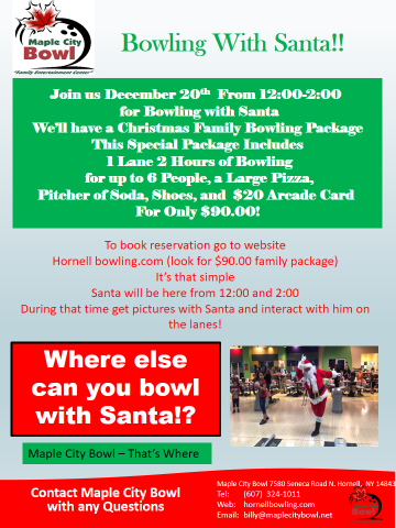 FAMILY PACKAGE $90 -2 Hours of Bowling (up to 6 people) -Shoe Rentals -Large Pizza and unlimited Soda
